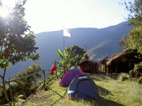 Tot le matin nous quittons l'hotel et prenons un taxi qui va nous déposer à La Cumbre, un col à 4800m. De la nous empruntons à pied le Chemin du Choro qui va nous mener jusqu'à Coroico, capitale de la région des Yungas, située à 1600m d'altitude, sur les contreforts des andes et au bord de la forêt tropicale (ouest de l'amazonie). Après une brève montée à environ 5000m nous redescendons et passons la première nuit dans le village de Cha'llapampa ou nous trouvons un repas et un endroit pour planter nos tentes pour quelques bols. Ici les gens vivent à un certain nombre d'heures de marche de la route la plus proche. Nous sommes tellement épuisés par le poids de nos sacs que nous dormons 12 heures d'affilée...Nous repartons le lendemain pour une journée de marche qui nous mène à notre deuxième étape située au lieu dit san francisco. Nous passons progressivement d'un environnement aride a plus de 4000m à la forêt de nuages puis à la forêt tropicale. La végétation change complètement au cours du chemin. Nous atteignons le troisième jour la Casa Sandillani ou vit un ermite japonais sympathique, puis finalement le village de Cairo duquel nous nous rendons en 4*4 à Coroico (après quelques réparations quand même). Coroico est une ville très cool avec un climat particulièrement agréable. Nous nous offrons un hotel avec piscine, sauna, hamac et autres ou pendant quelques jours nous nous remettons tranquillement de nos efforts. Nous retournons ensuite brièvement à La Paz en minibus, par la fameuse "route la plus dangereuse du monde". Effectivement, il y a des a pics qui ne pardonnent pas. La situation est tendue et nous prenons directement l'avion. Direction Santa Cruz.