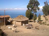 Nous sommes maintenant 6 et nous prenons le bus de cusco direction puno sur la cote peruvienne du lac titicaca. Nous trouvons rapidement un hotel qui nous propose une excursion de lendemain vers les iles flottantes (des iles arificielles en roseaux) et l'ile de taquile. Une belle journée de bateau (et beaucoup de soleil) mais la visite de Taquile est un peu courte. Nous repartons le lendemain en Bus vers Copacabana, sur la rive bolivienne. Arrivé à la frontière, le bus fait demi tour: une grève générale vient d'éclater en Bolivie, assorties de barrages routiers (le bloqueo). Nous prenons nos bagages, descendons à la frontière et laissons la majorité des touristes retourner au Pérou. Des boliviens en provenance de l'ile du soleil nous proposent de nous amener à Copacabana en bateau...C'est parti et nous voila en bolivie ou nous trouvons un hotel sympa à l'ambiance soixante-huitarde à souhait. A part quelques français, hollandais, argentins, il n'y pratiquement pas de touristes à Copacabana à cause du bloqueo et d'ailleurs tous les magasins sont fermés (enfin on peut toujours s'arranger). Il règne ici une ambiance relax rarement vue ailleurs et le lac est vraiment magnifique, sans parler des étoiles. Nous partons en excursion sur l'ile du soleil en compagnie de Sandra des pays bas que nous avons rencontré autour d'un feu de camp dans le patio de l'hotel. Après de multiples parlementations nous trouvons un bateau grace auquel nous navigons vers l'ile ou le soleil est né. Selon la légende, c'est la que tout aurait commencé pour les incas. Ici, pas de transports, tout se fait a pied. Nous dormons une nuit à l'hotel puis revenons le lendemain à Copacabana, après avoir fait le tour de l'ile à pied. Le soir, c'est l'anniversaire de Mr Sangoosai. Ramon lui offre un tatou. Nous décidons de continuer vers La Paz contrairement à Chang qui repart au Pérou direction Arequipa. Suite au prochain épisode.